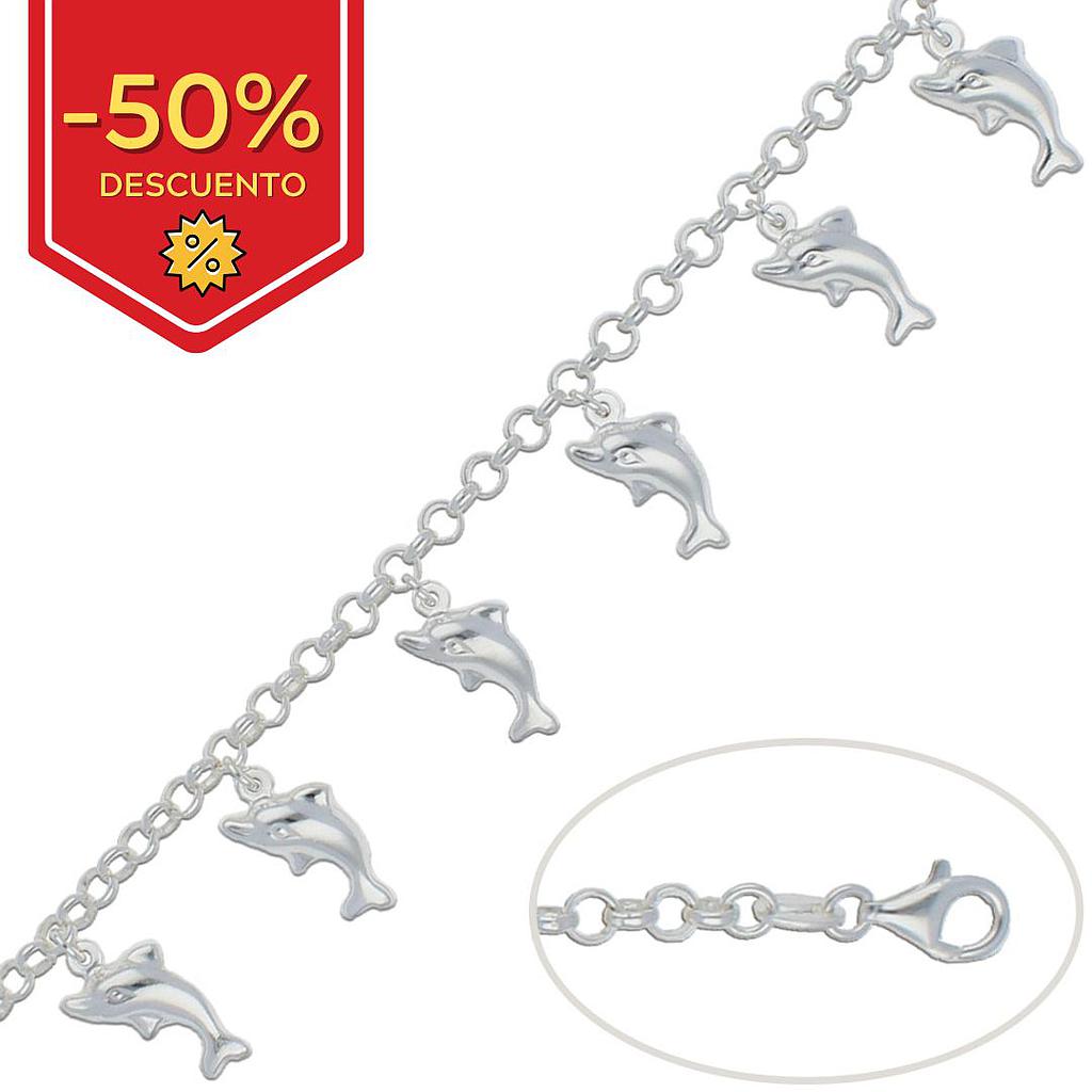 Pulsera de delfines en Plata de Ley 925mm. Terminación en brillo. Cadena rolot de 4mm.