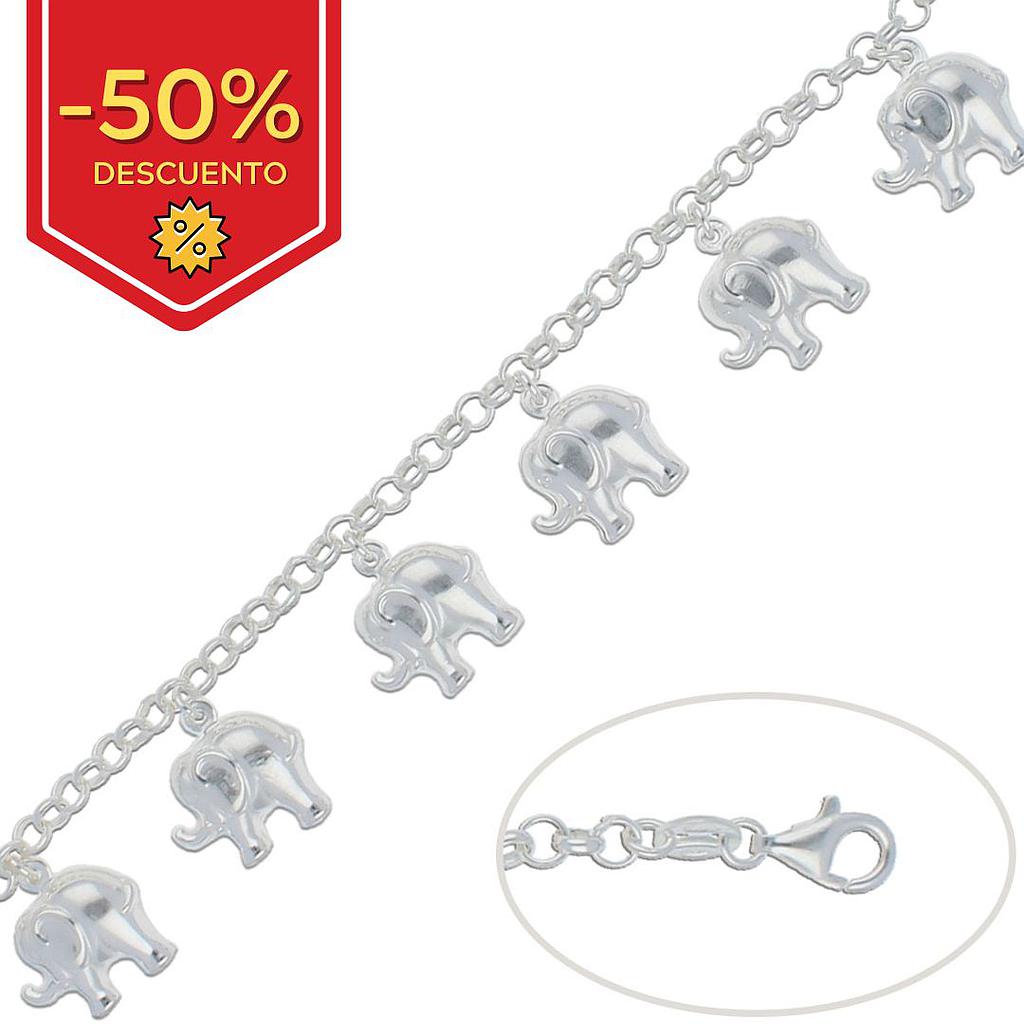 Pulsera de elefantes en Plata de Ley 925mm. Terminación en brillo.