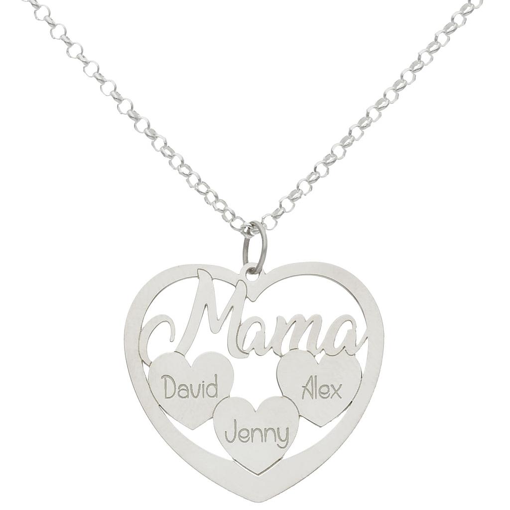 Gargantilla con MAMA + 3 corazones en Plata de Ley para grabación de nombres.