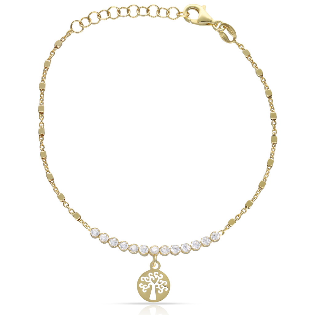 Pulsera en Plata chapada en Oro con árbol de la vida + circonitas.