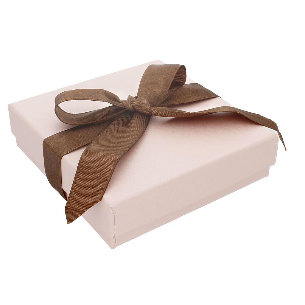 Color rosa con cinta en color marrón para realizar lazo. Interior en color blanco.