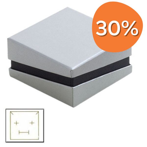 Color plata con línea en azul marino. Interior en color blanco. Material del estuche: papel.