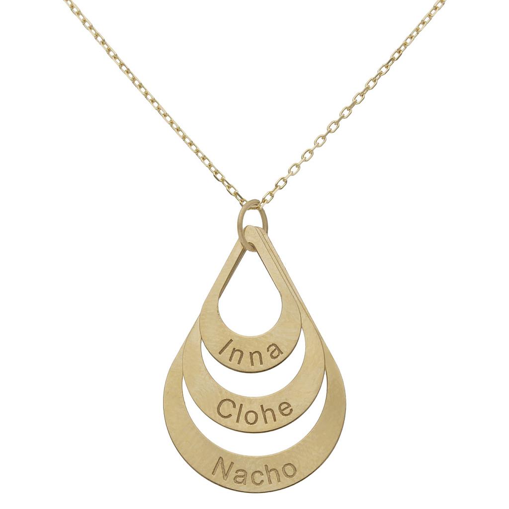 Gargantilla con 3 colgantes en forma de lágrima en Oro de 18 Kl. personalizable con 3 nombres.