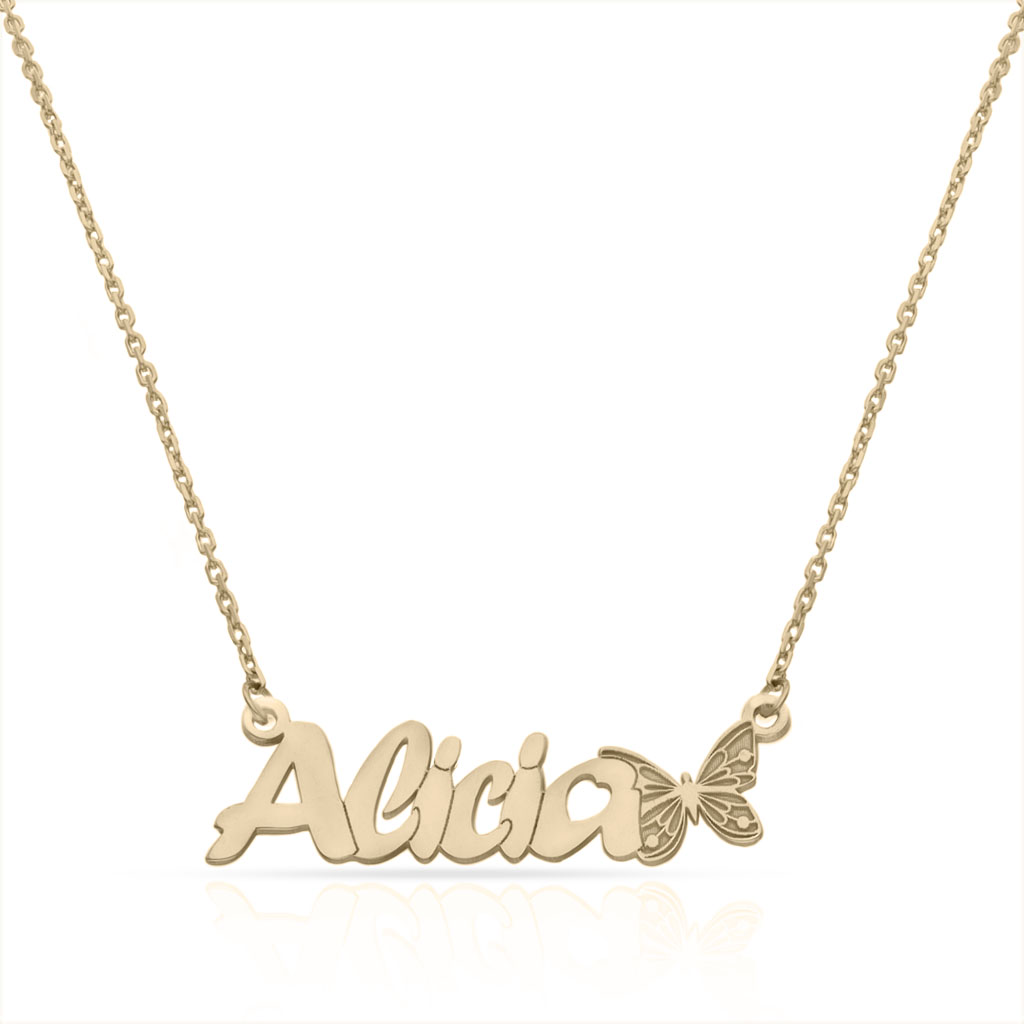 Gargantilla de nombre + mariposa en Oro 18 Kl.