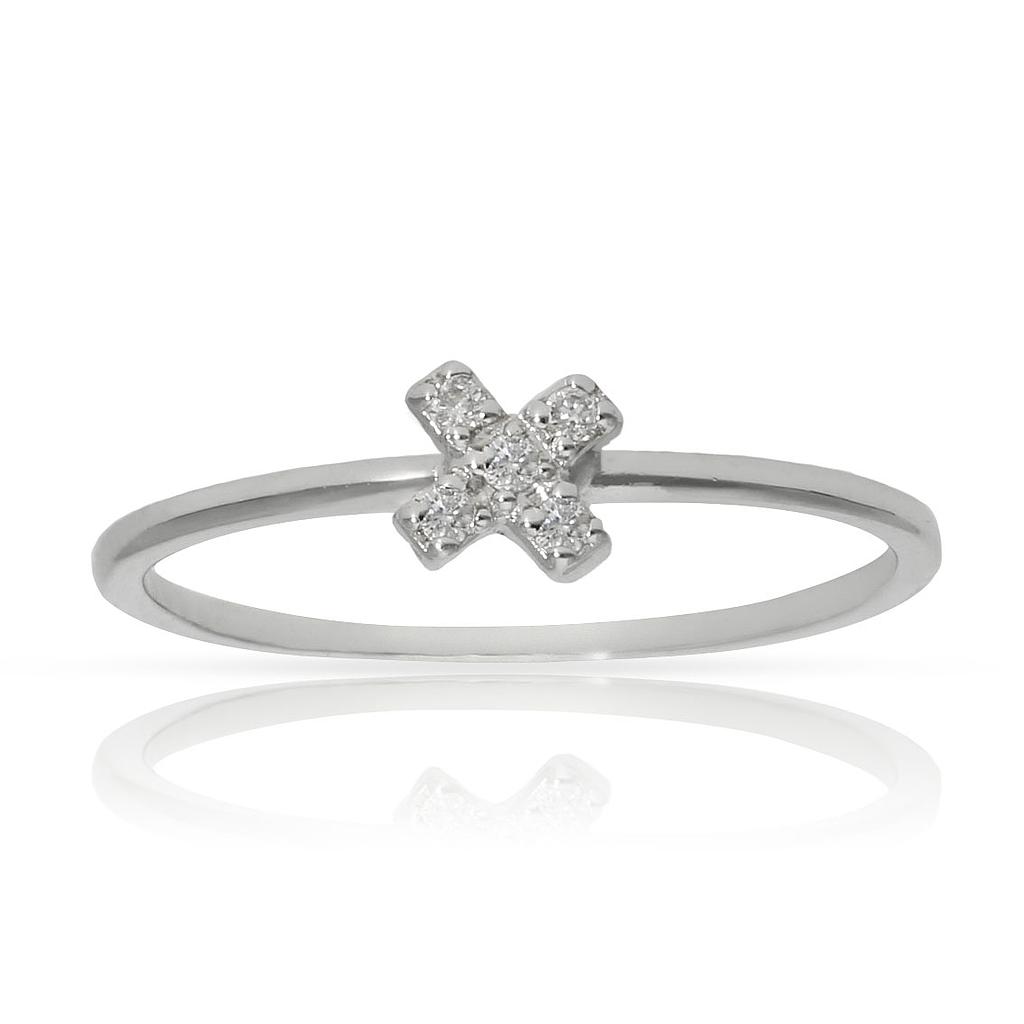 Sortija en Oro Blanco de 18 Kl. con diamantes. Ancho del detalle central: 4.60mm. Ancho del aro de la sortija: 1mm.