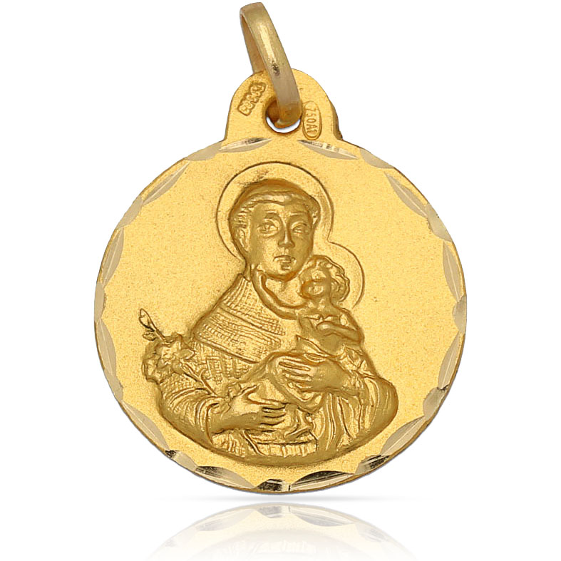 Medalla de San Antonio en Oro de 18 Kl con borde tallado y forma redonda.
