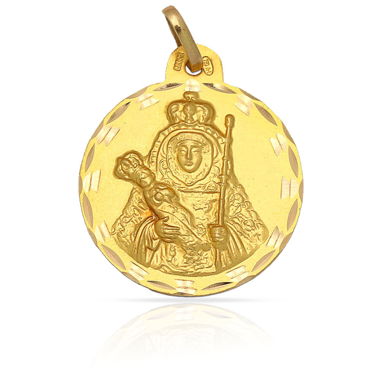 Medalla Virgen de la Candelaria en Oro amarillo de 18 Kl con borde tallado y forma redonda.
