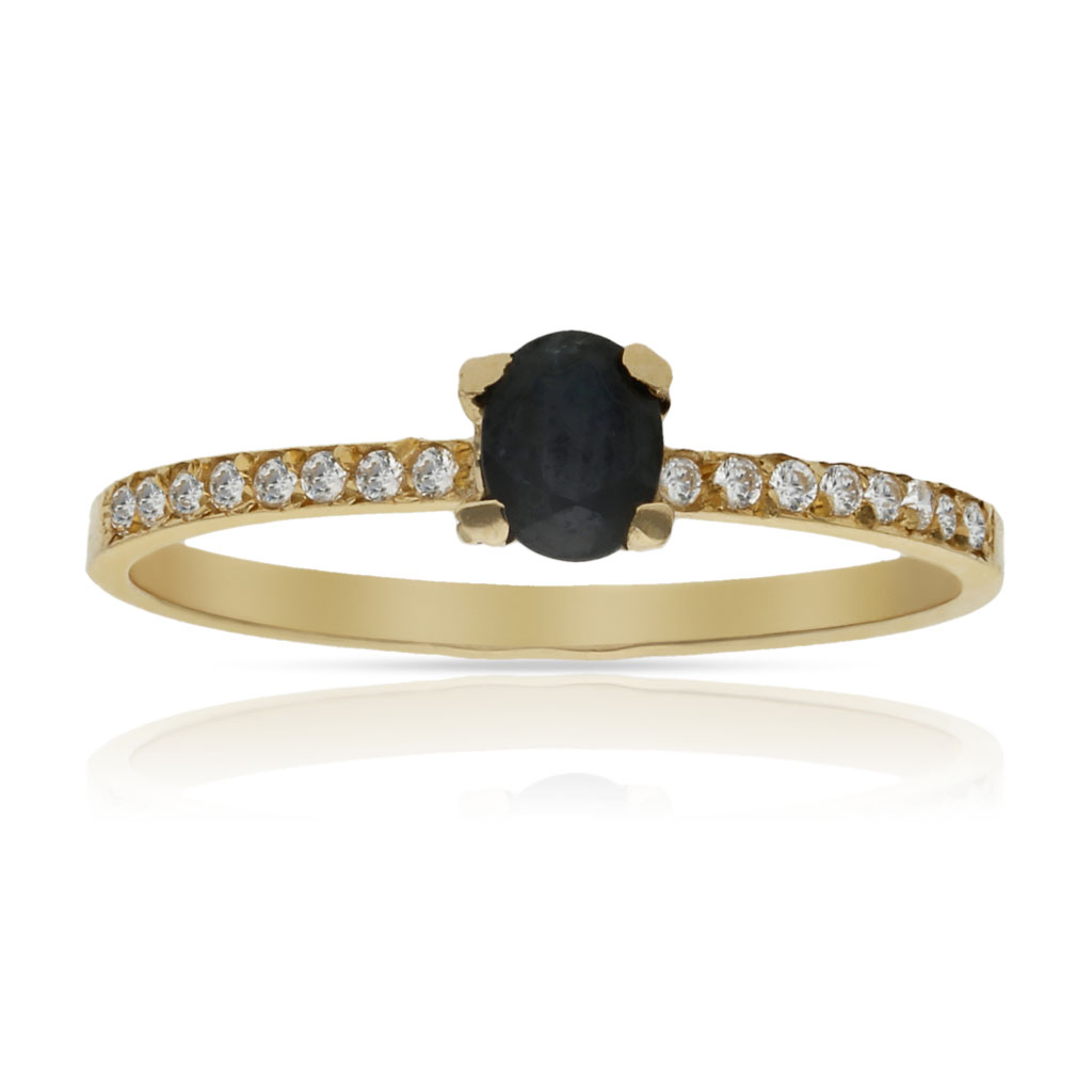 Sortija en Oro de 18 Kl. con zafiro fino y circonitas.