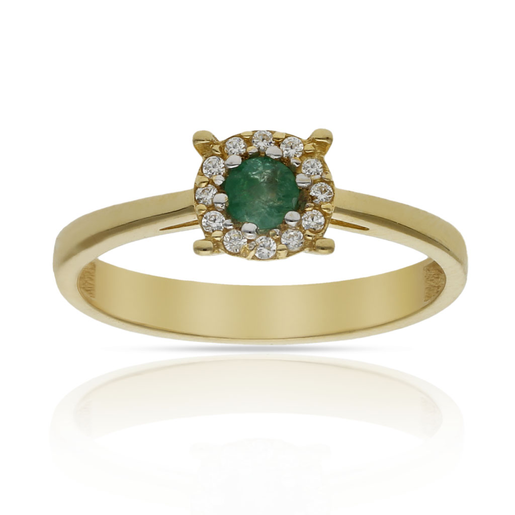 Sortija en Oro de 18 Kl. con esmeralda fina + cerco de circonitas.