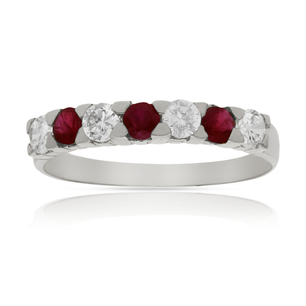 Sortija en Oro blanco de 18 Kl. con 3 rubíes finos + 4 circonitas.