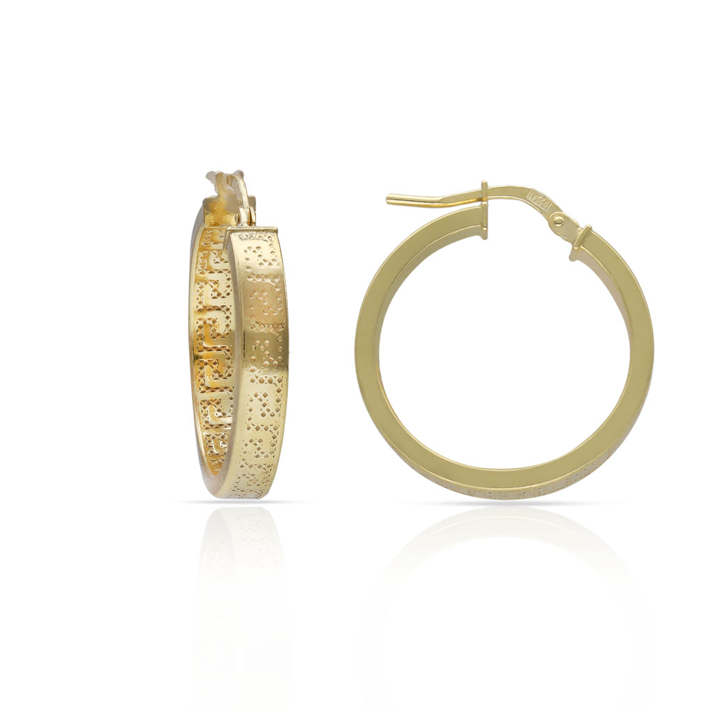 Aros con greca en Plata chapada en oro.