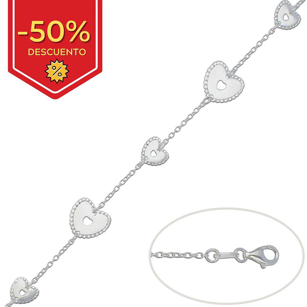 Pulsera con corazones en Plata de Ley de 925mm. Terminación en brillo.