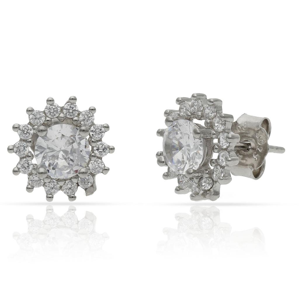 Pendientes en Plata de Ley de 925mm con piedra central + cerco de circonitas.