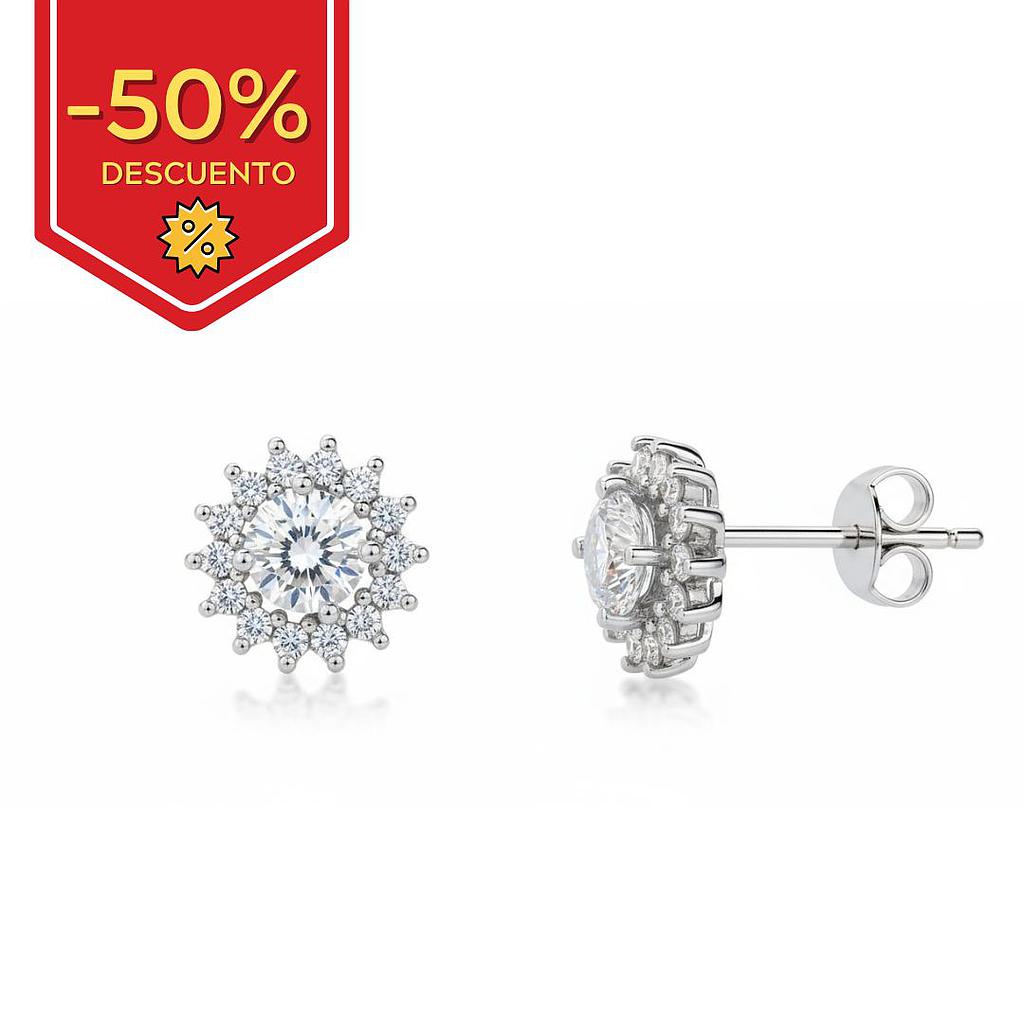 Pendientes en Plata de Ley de 925mm con piedra central + cerco de circonitas.