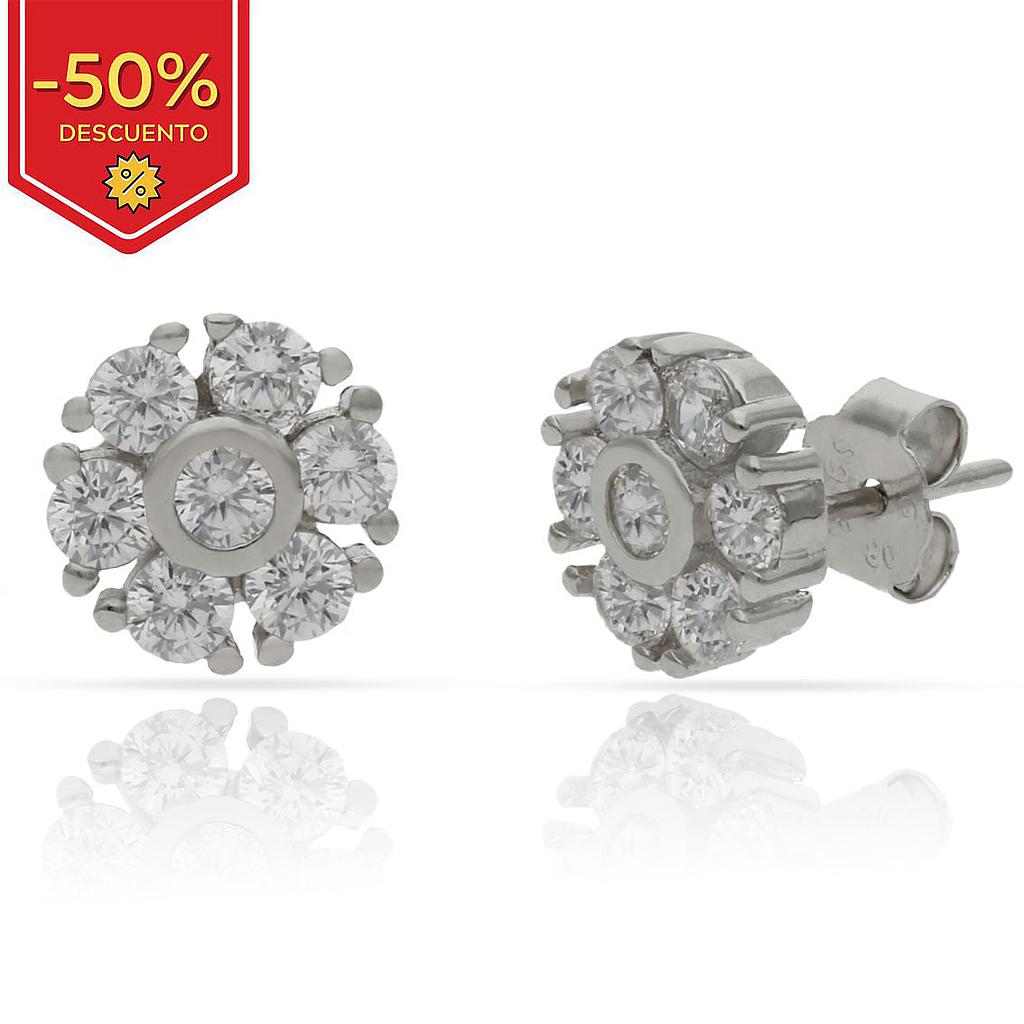 Pendientes rosetón en Plata de Ley de 925mm con circonitas.