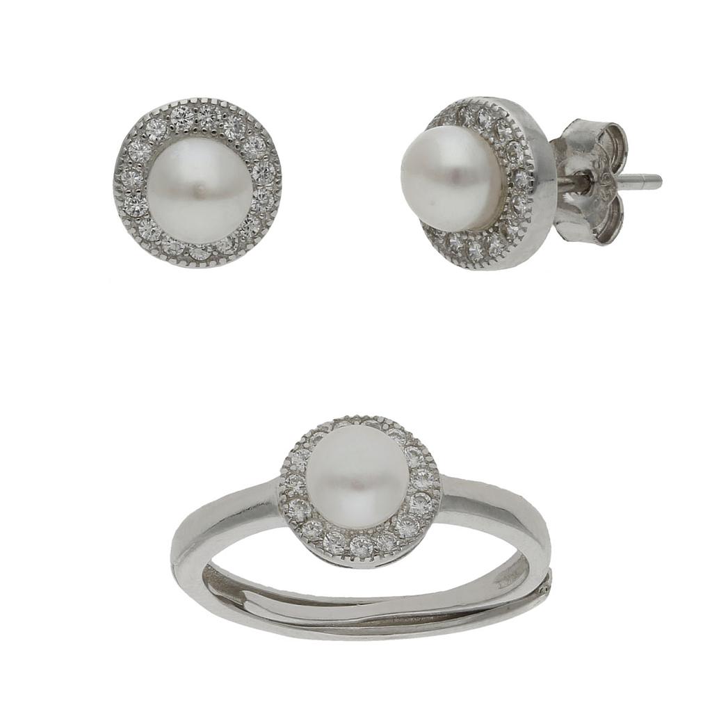 JUEGO PERLAS + CIRCONITAS PLATA 925MM