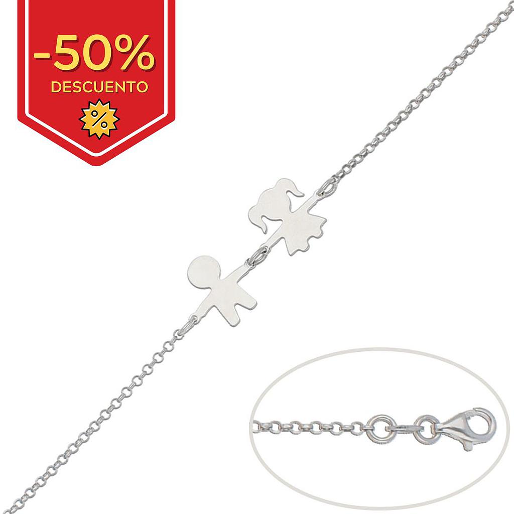 Pulsera en Plata de Ley de 925mm con niña + niño. Terminación rodiada.