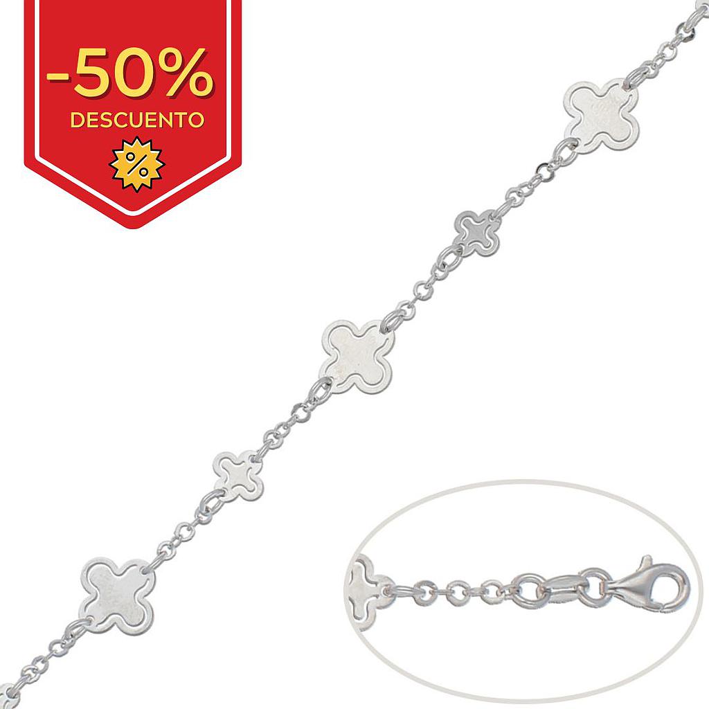 Pulsera de treboles en Plata de Ley de 925mm. Terminación rodiada.