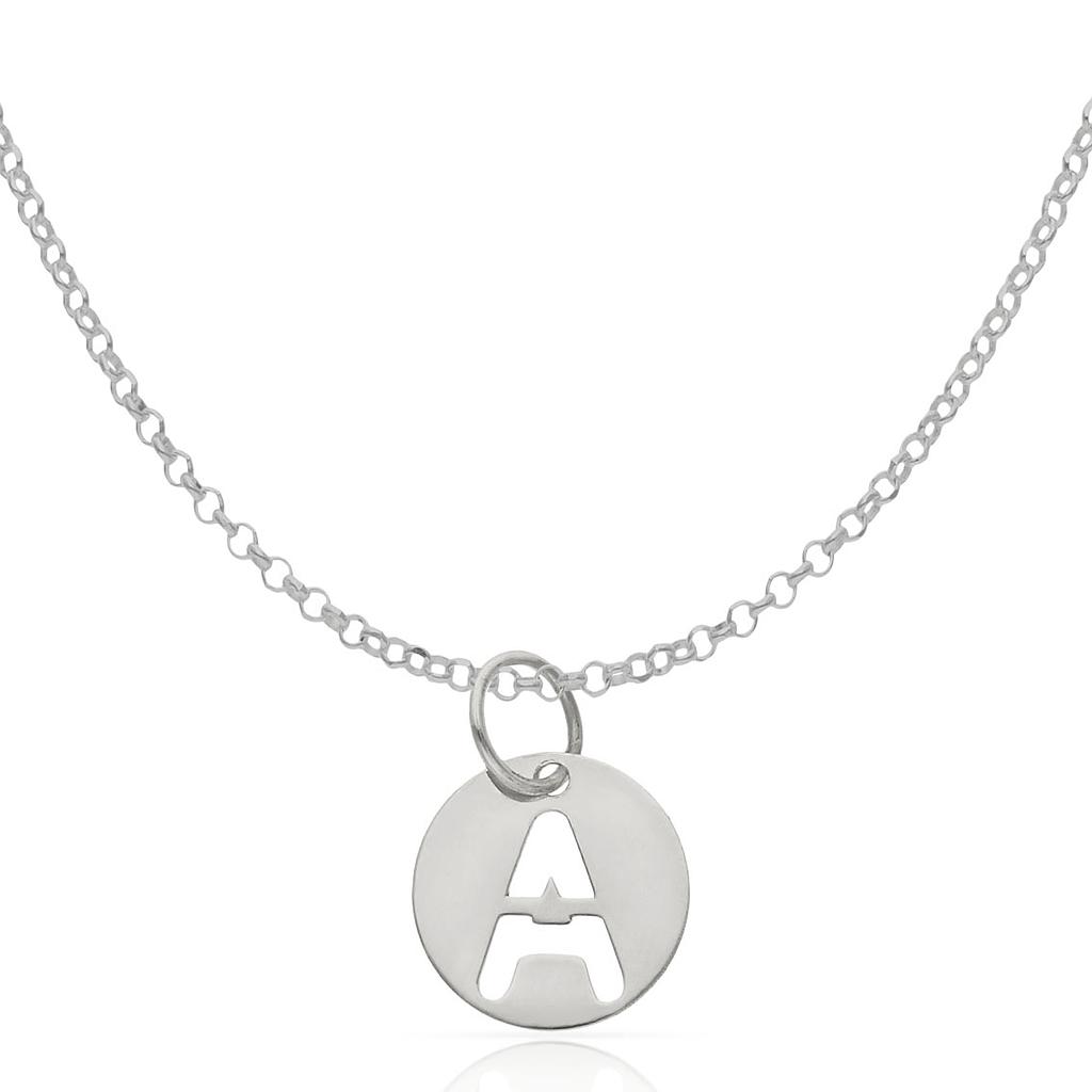 Colgante círculo en Plata de Ley 925mm con letra calada.