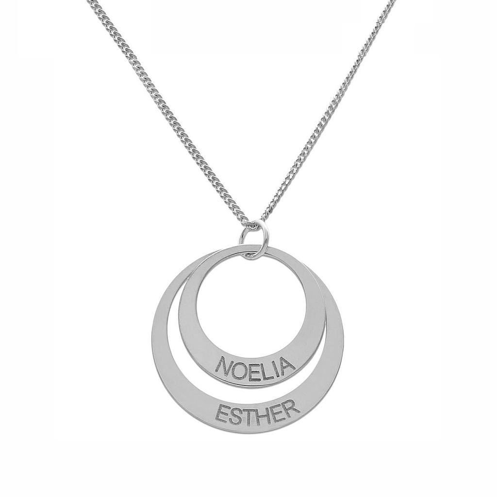 Cadena + Colgante círculos en Plata de Ley 925mm personalizable con 2 nombres.