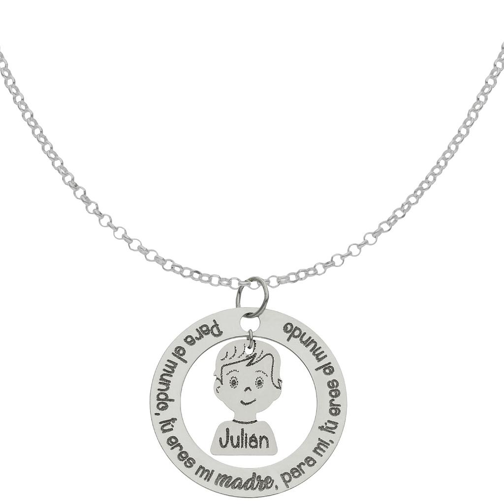 Gargantilla frase PARA EL MUNDO, TÚ ERES MI MADRE, PARA MÍ, TÚ ERES MI MUNDO + Niño en Plata de Ley 925mm personalizable con nombre.