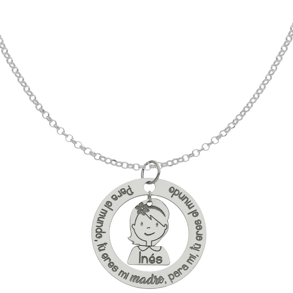 Gargantilla frase PARA EL MUNDO, TÚ ERES MI MADRE, PARA MÍ, TÚ ERES MI MUNDO + Niña en Plata de Ley 925mm personalizable con nombre.