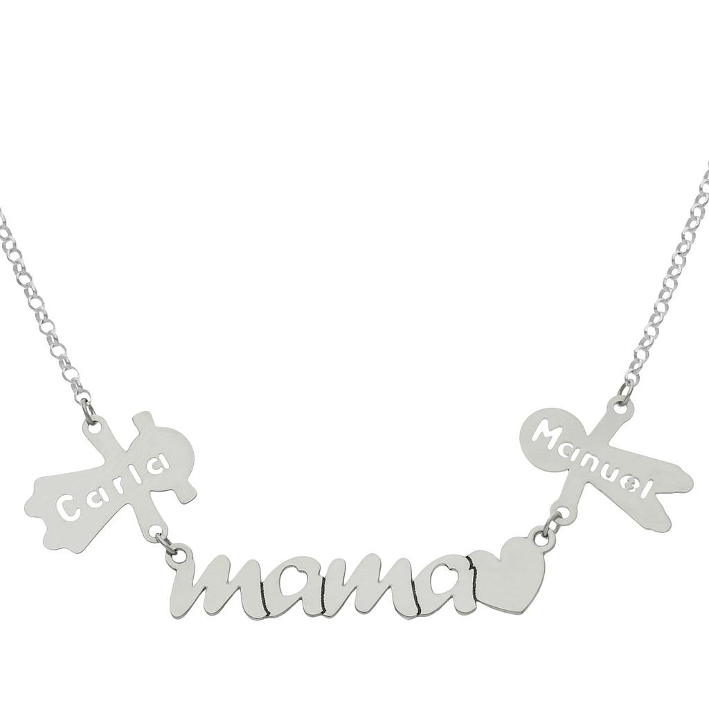 Gargantilla mama + corazón + niños en Plata de Ley 925mm.