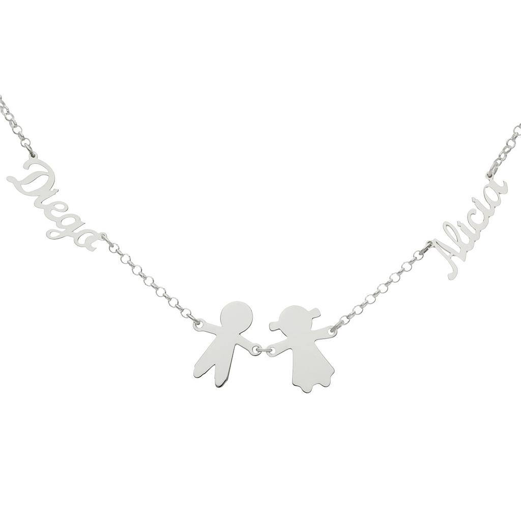 Gargantilla en Plata de Ley con dos nombres + niño + niña.