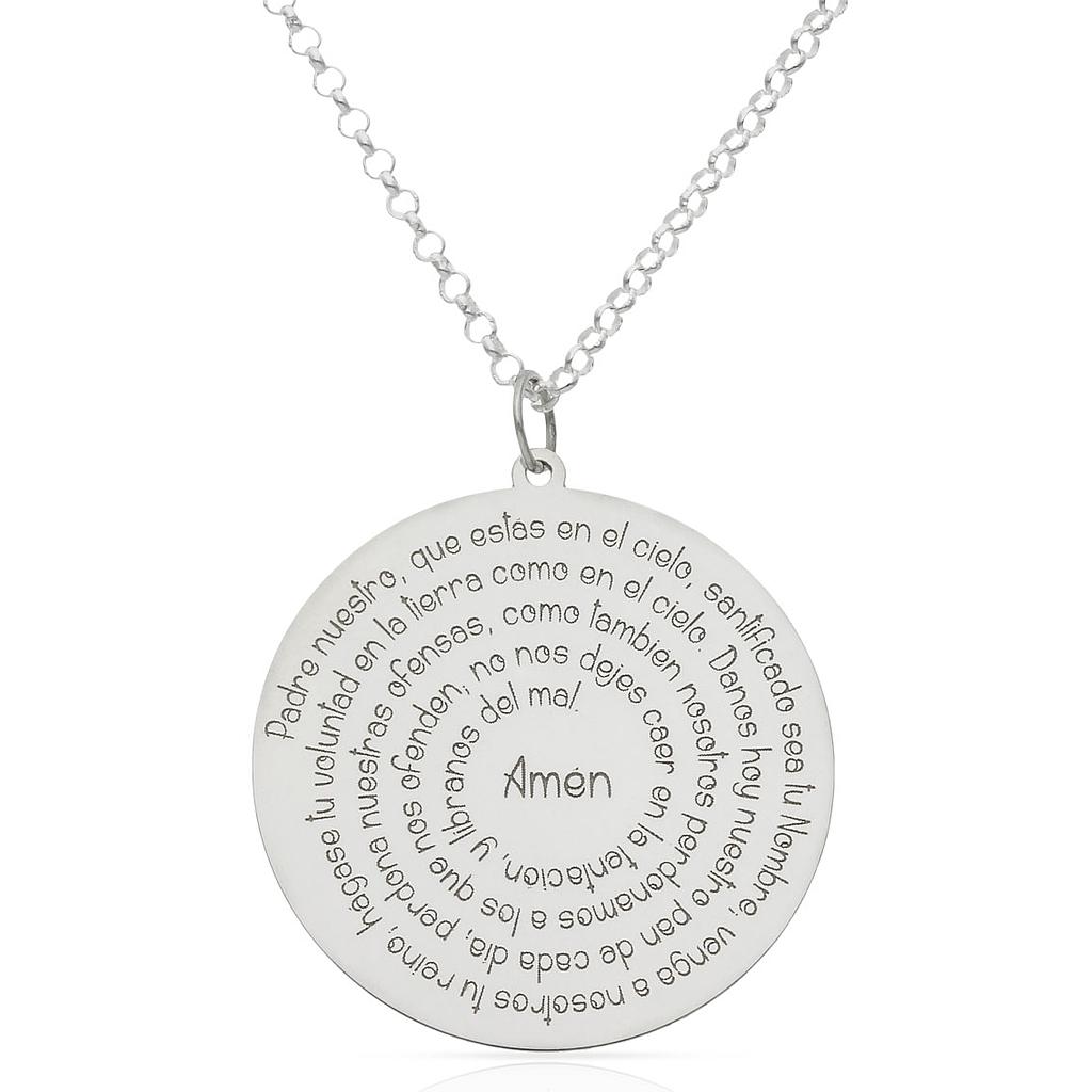 Cadena + colgante en Plata de Ley 925mm con la grabación en espiral del Padrenuestro. Se puede personalizar con cualquier tipo de texto.