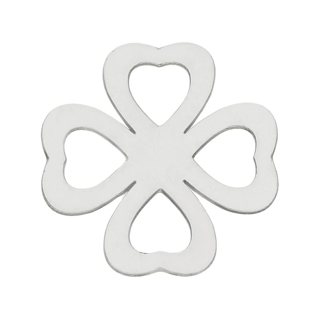 Abalorio TREBOL en Plata de Ley 925mm. Terminación en brillo. Medidas: 16x16mm.