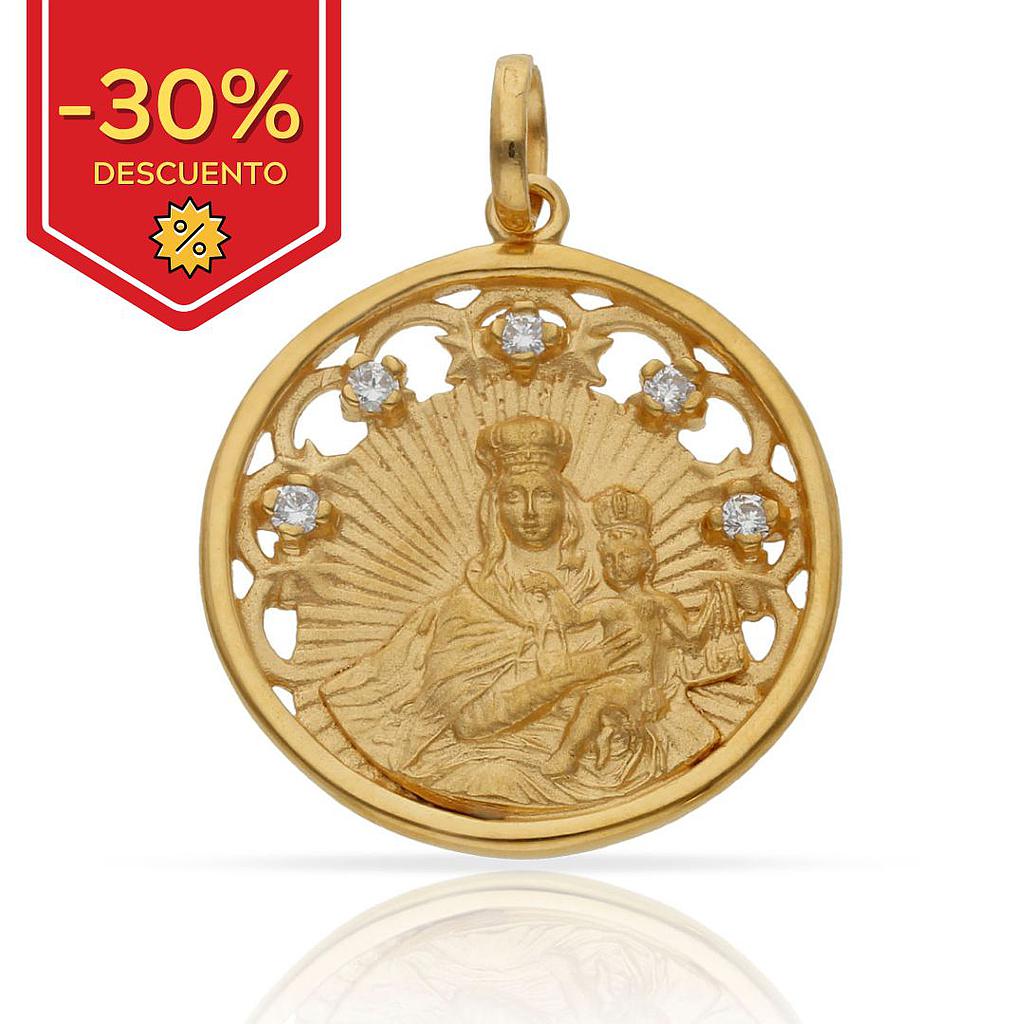 Medalla de la Virgen del Carmen en Plata chapada en Oro con circonitas.