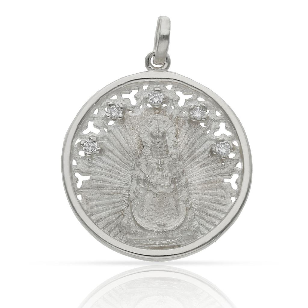 Medalla de la Virgen del Rocío en Plata de Ley de 925mm con circonitas.
