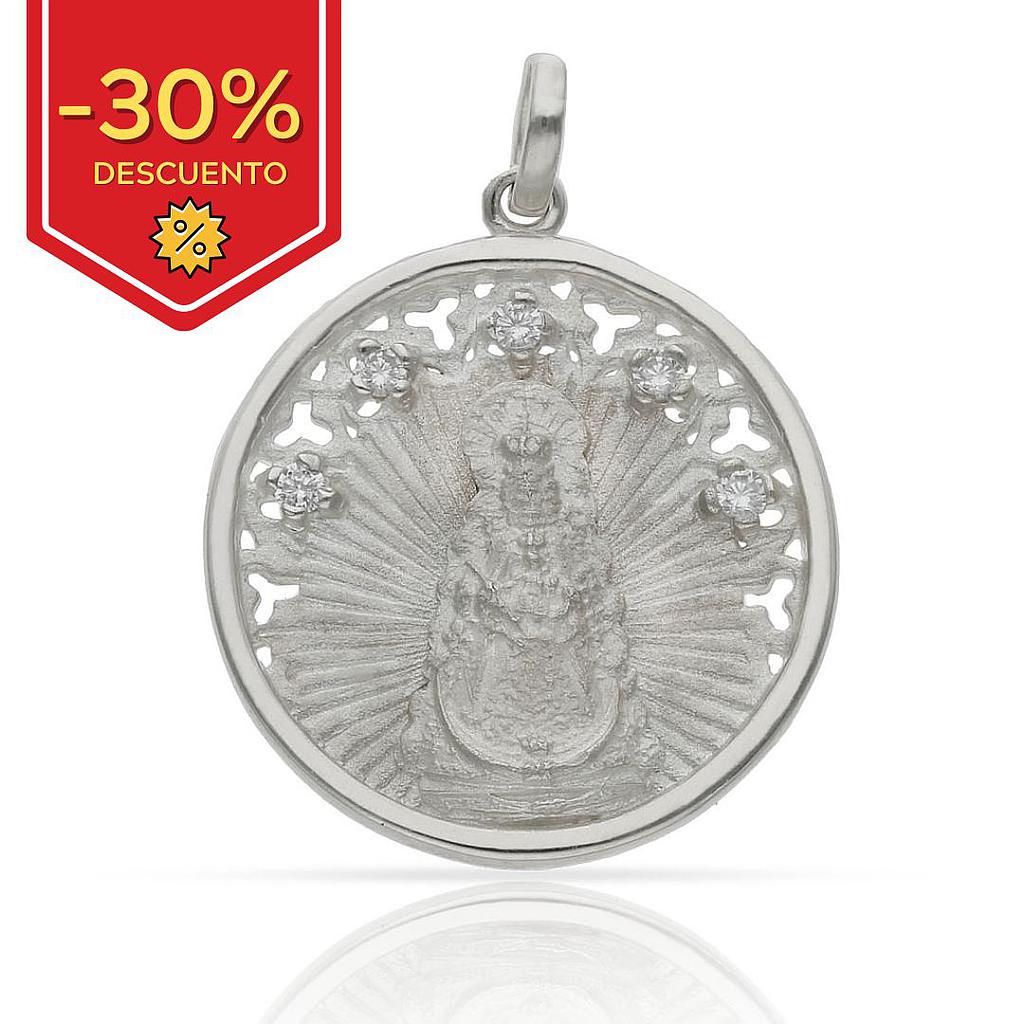 Medalla de la Virgen del Rocío en Plata de Ley de 925mm con circonitas.