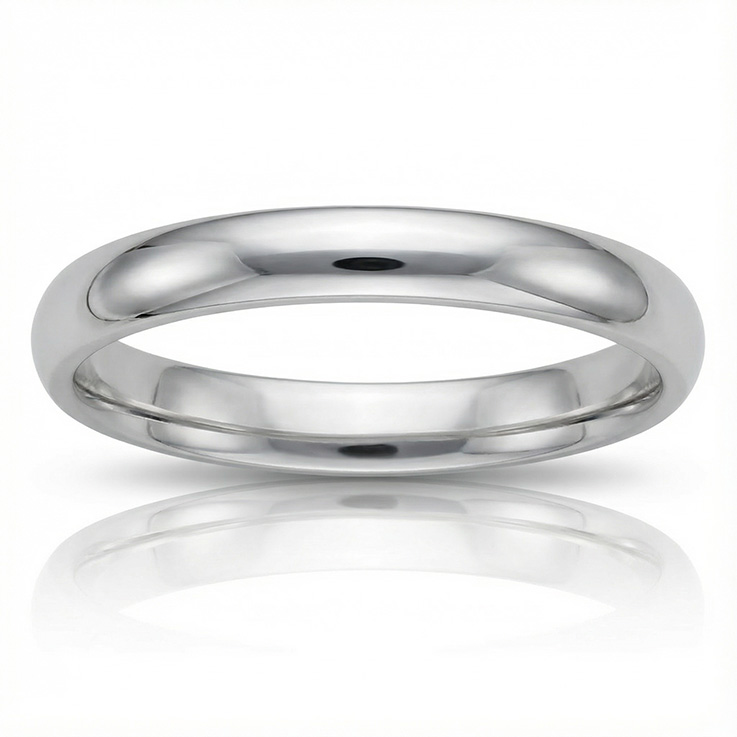 Alianza en Plata de Ley 925mm media caña con baño rodio. Ancho de 3mm.