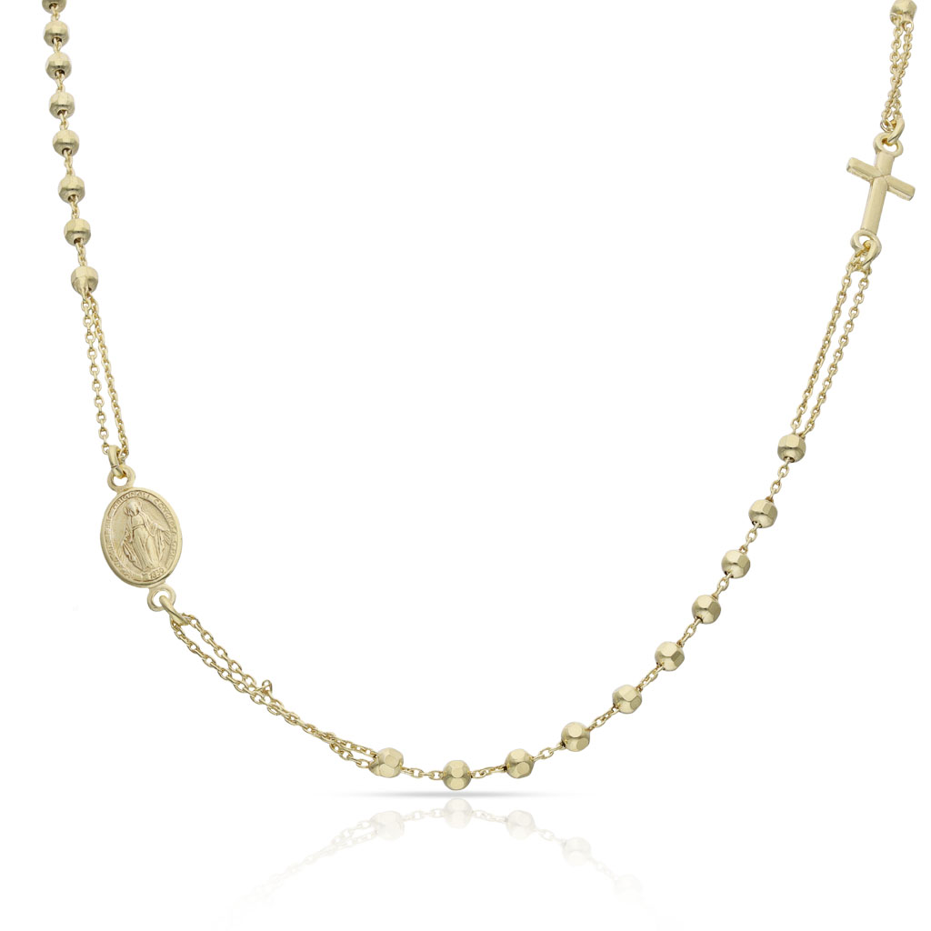 Gargantilla rosario en Plata chapada en Oro con cruz y medalla milagrosa.
