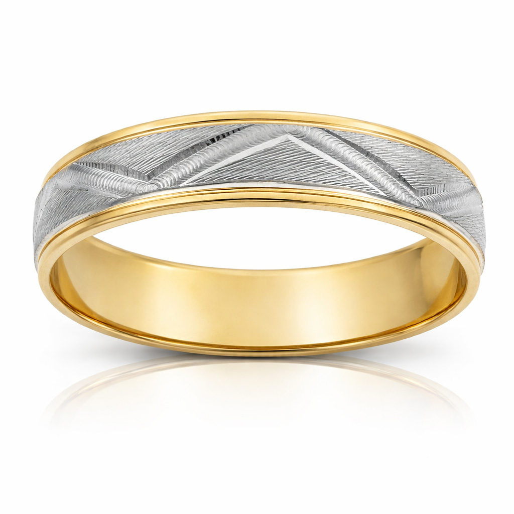 Alianza bicolor tallada en Oro de 18 Kl. con Zig-Zag.