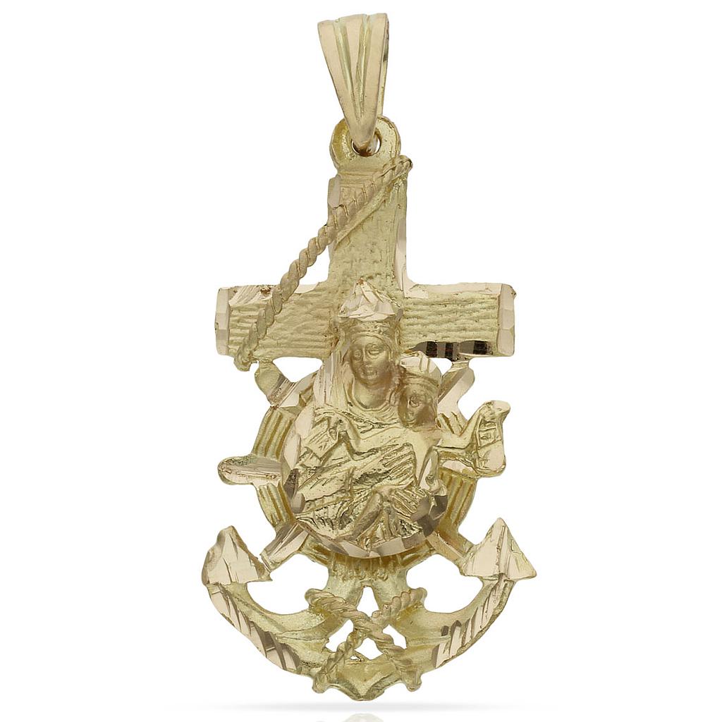 Cruz Marinera en Oro de 18 Kl. con Virgen del Carmen.