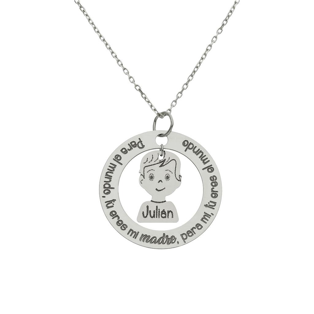 Gargantilla frase PARA EL MUNDO, TÚ ERES MI MADRE, PARA MÍ, TÚ ERES EL MUNDO + niño en Oro blanco 18 Kl. personalizable con nombre.
