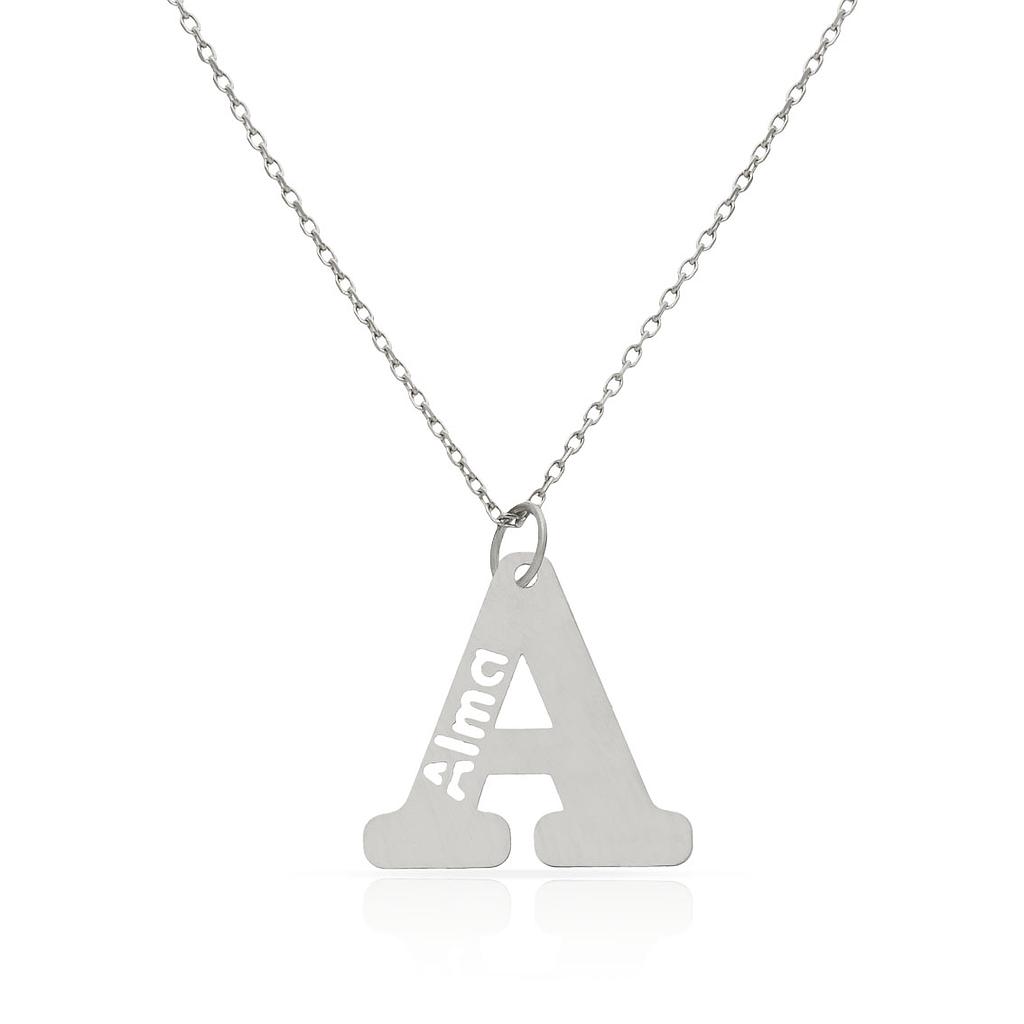 Gargantilla con letra + nombre calado en Oro blanco de 18 Kl.