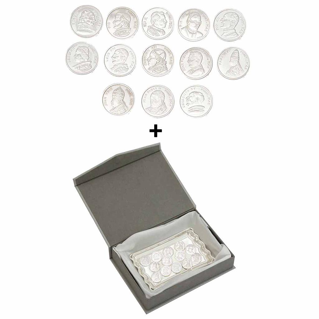 Arras de papas en Plata de Ley 925mm con bandeja en acero plateado y estuche.