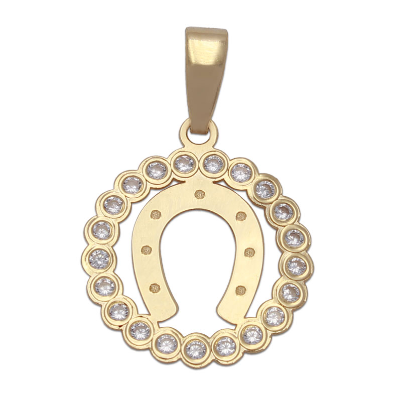 Colgante redondo en Oro 18 Kl. con herradura. Cerco de circonitas.