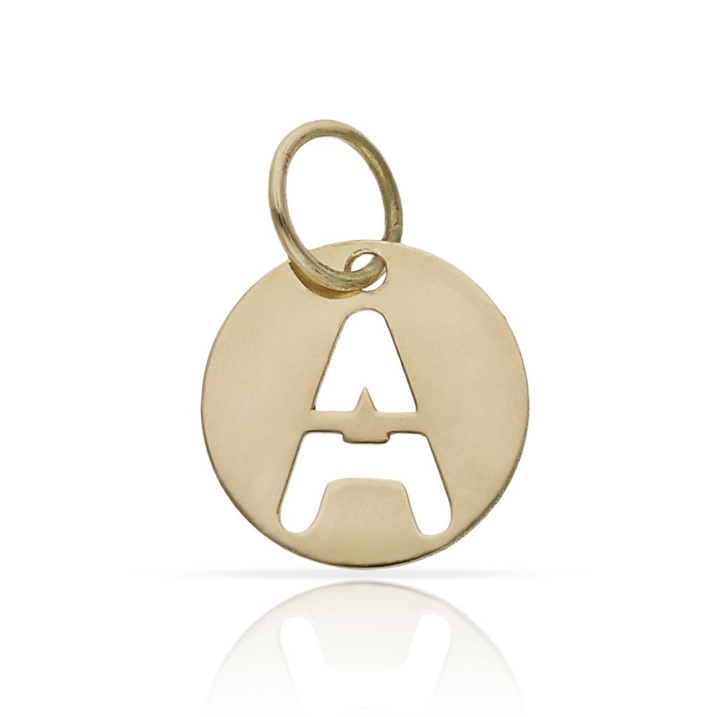 Colgante círculo en Oro 18 Kl. con letra calada. Medida del colgante: 10mm.