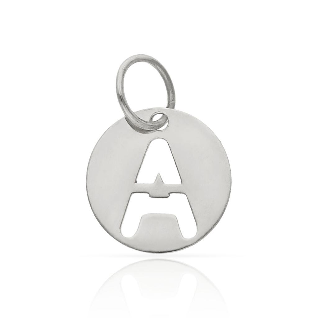 Colgante círculo en Oro blanco de 18 Kl. con letra calada.