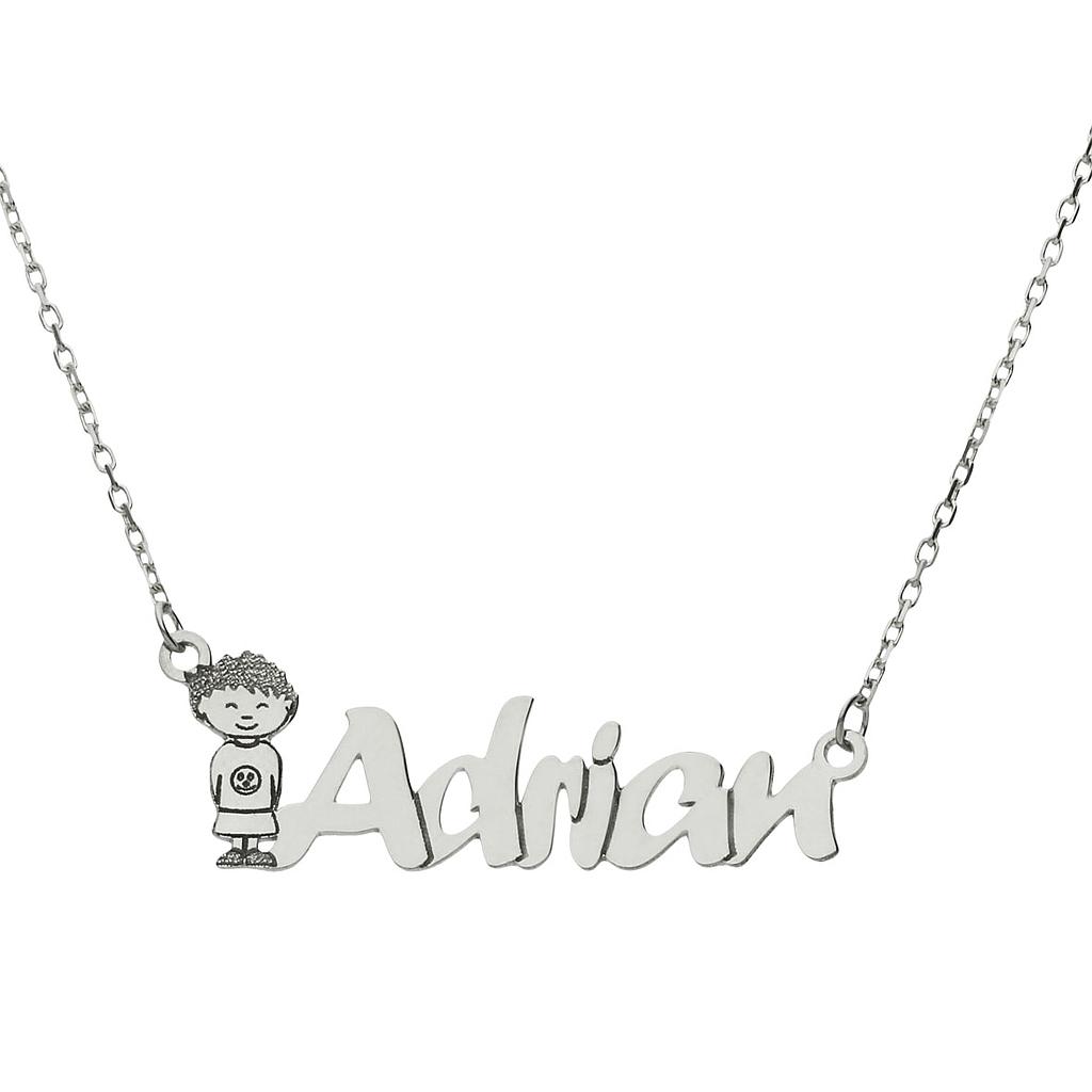COLGANTE ORO BLANCO 18KL NIÑO + NOMBRE