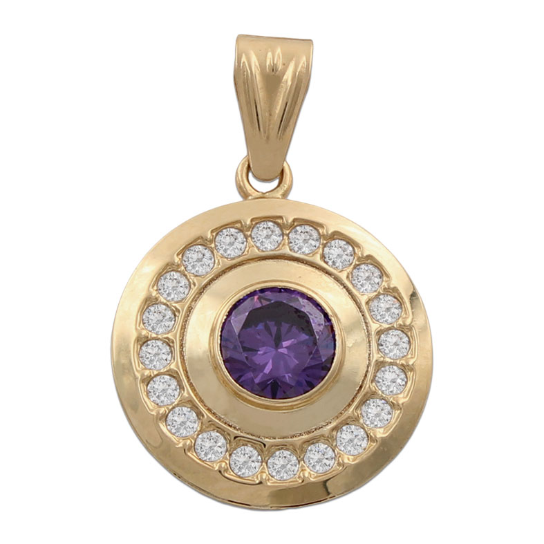 Colgante en Oro de 18 Kl. con piedra en color lila y cerco de circonitas.