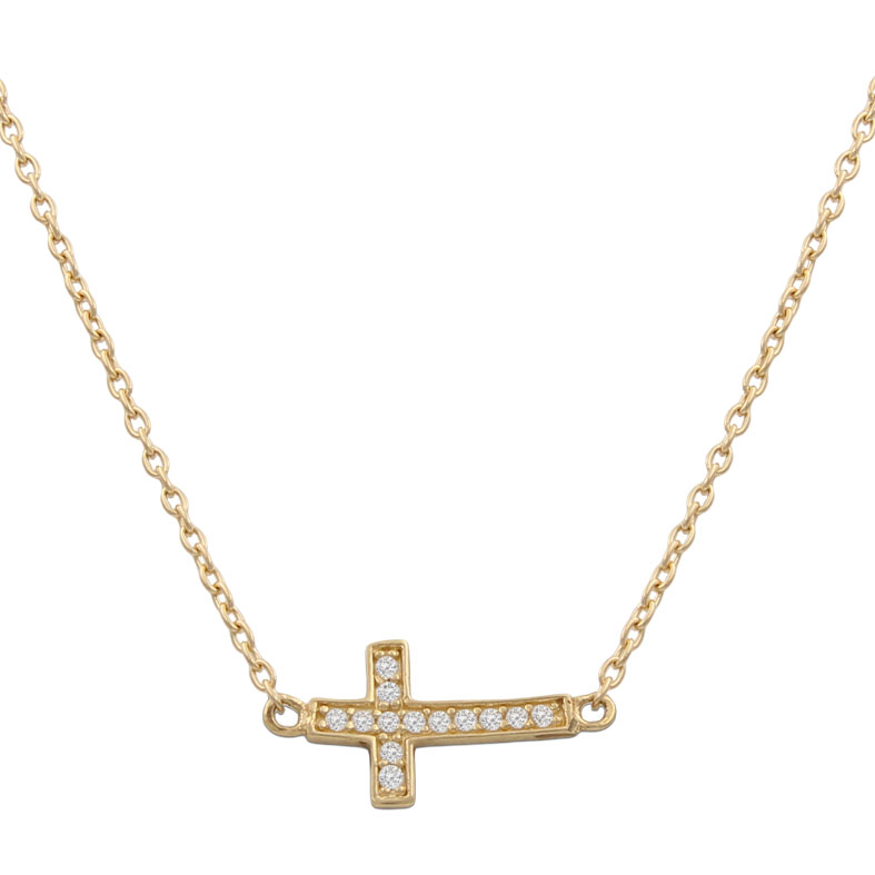 Gargantilla con cruz en Oro de 18 Kl. con circonitas. Terminación en brillo. Medidas del colgante: 8x15mm.