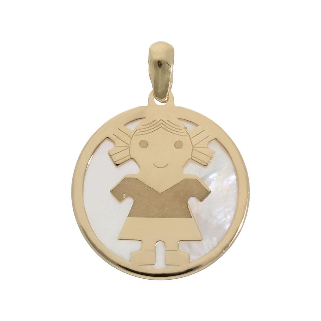 Colgante niña en Oro de 18 Kl. con piedra nácar.