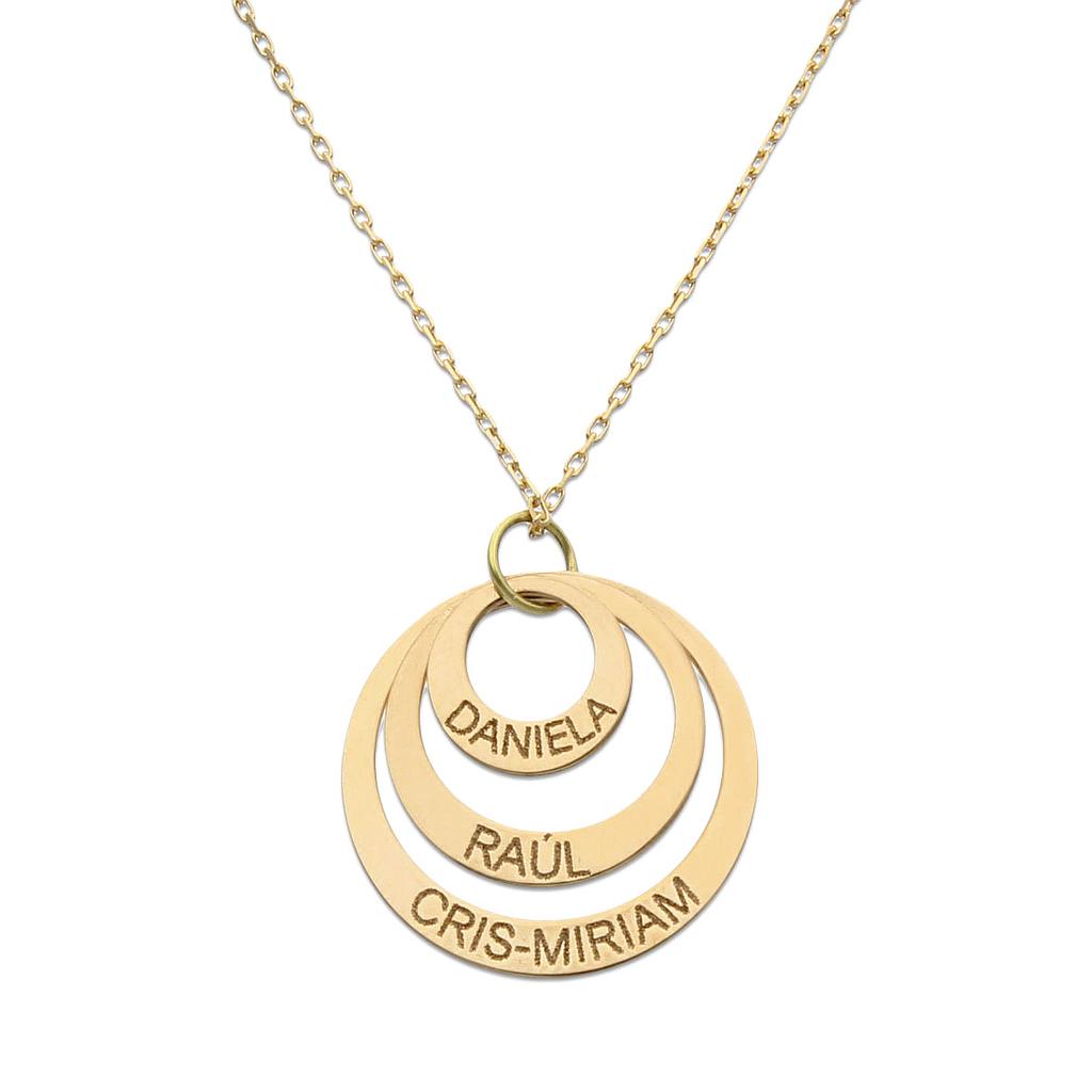 Cadena + colgante círculos en Oro de 18 Kl. personalizable con 3 nombres.