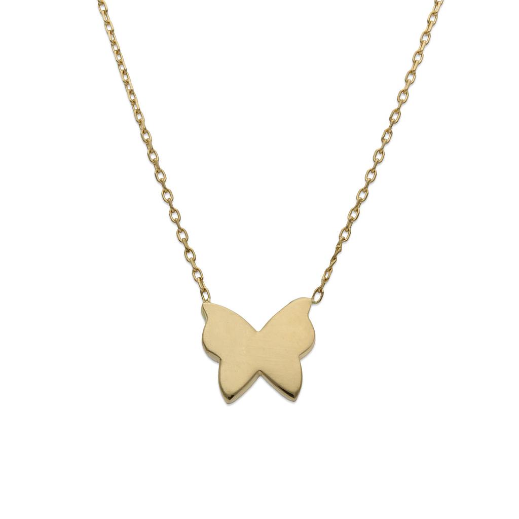Colgante mariposa en Oro de 18 Kl. Terminación en brillo. Medidas del colgante: 9x9mm.