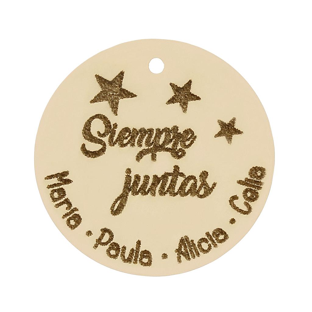 Abalorio frase SIEMPRE JUNTAS en Oro 18 Kl. Terminación en brillo. Medidas: 16mm.